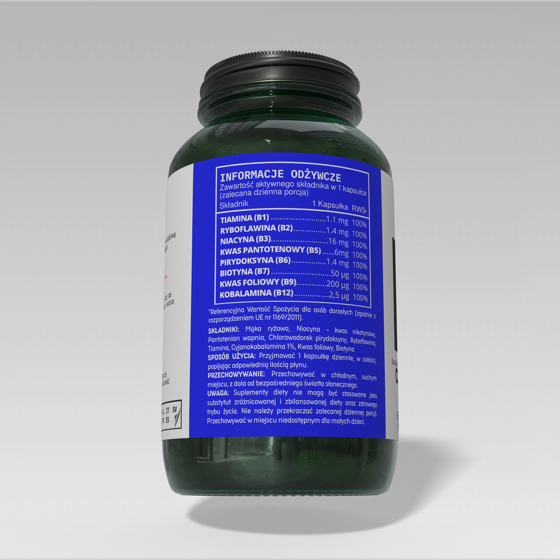 The formula contains highly absorbable forms of vitamins B1, B2, B3, B5, B6, B7, B9 (folic acid) and B12, ensuring optimal absorption and maximum health benefits.